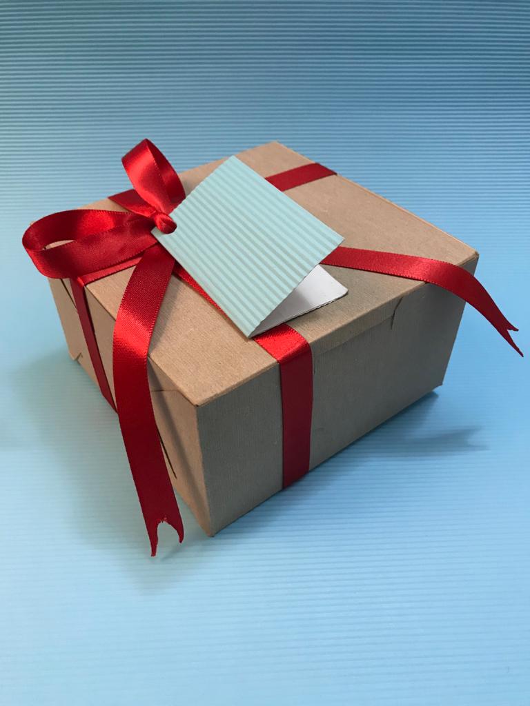 Caja de 5 Paletas Artesanales, 3 Brownies de A&A y 3 Toppings. Especialmente decorada con cinta, moño y tarjeta en donde puedes personalizar el mensaje que desees.