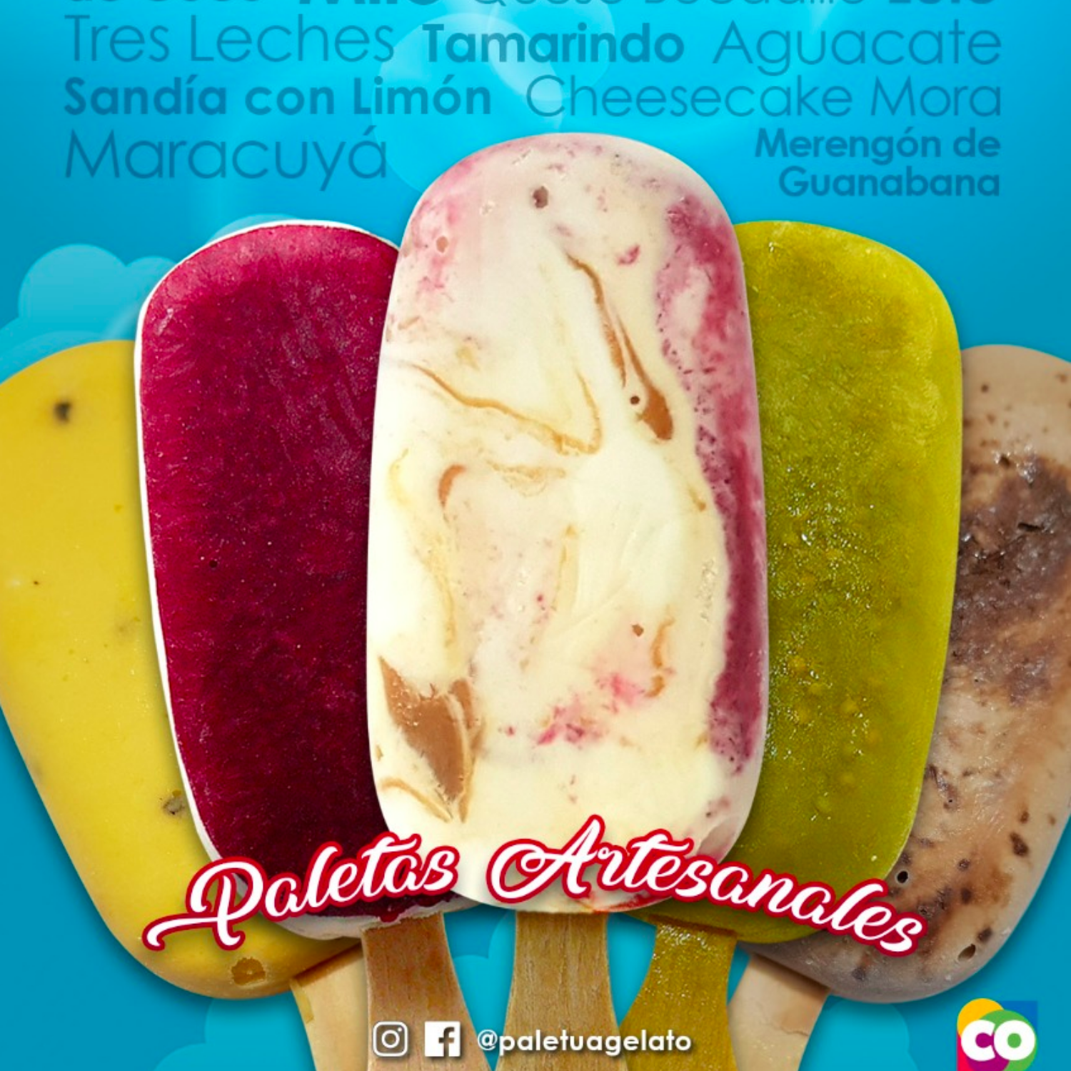 Caja de 8 Paletas Artesanales y 3 Toppings. Combina tus sabores preferidos como desees!!!